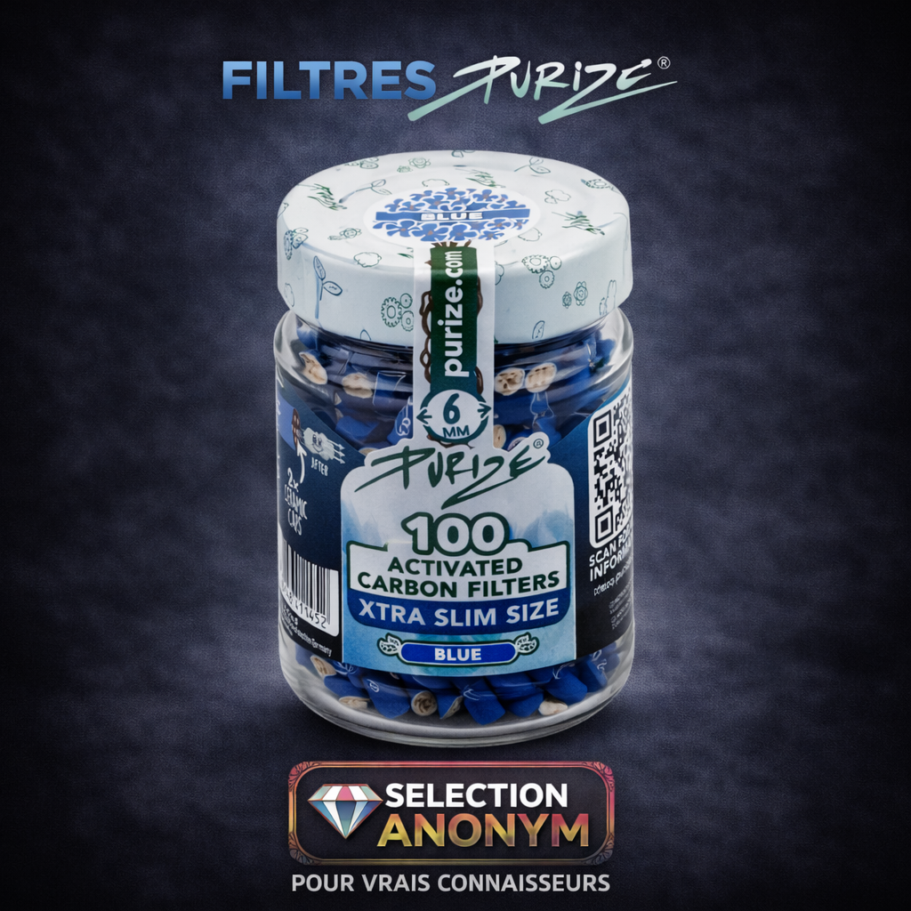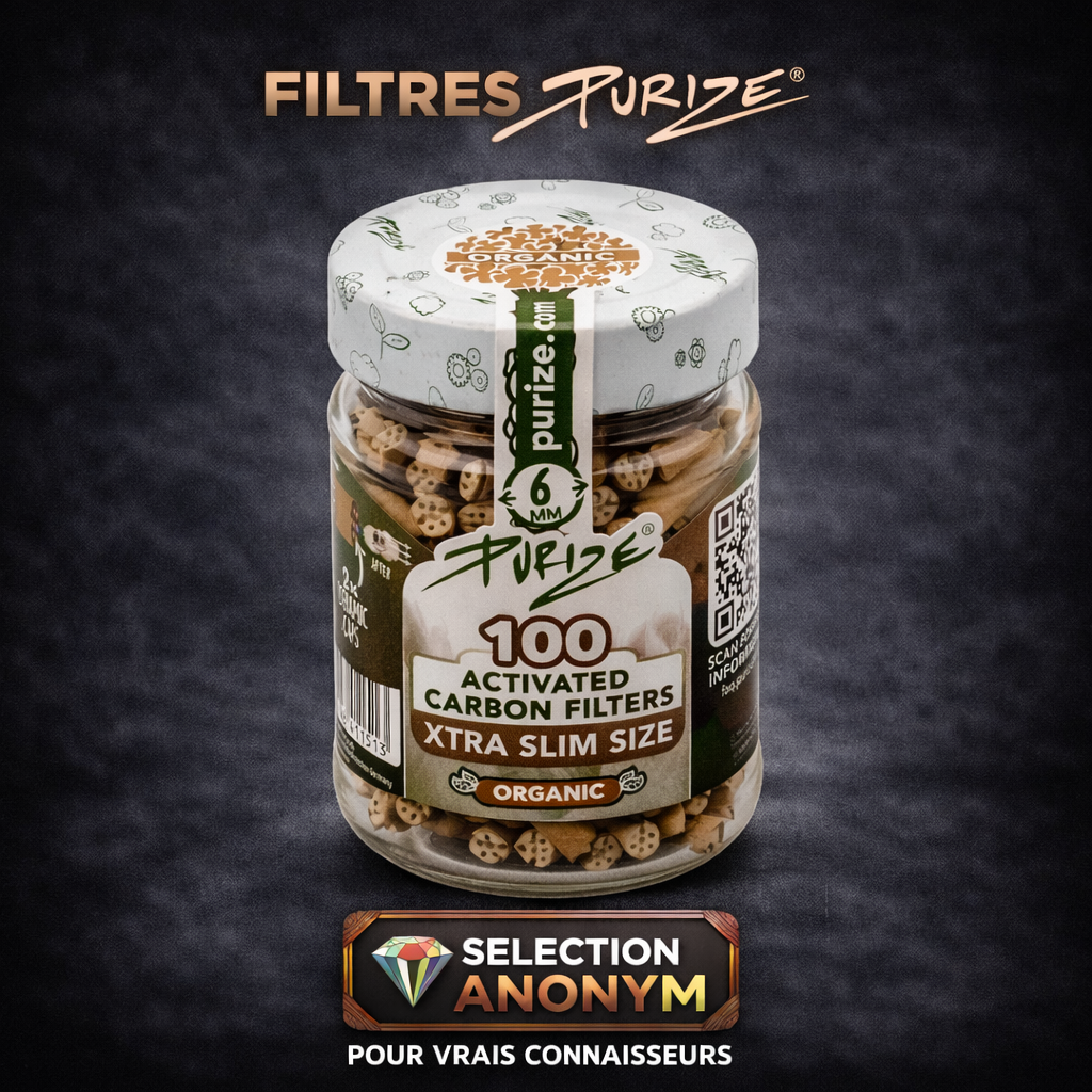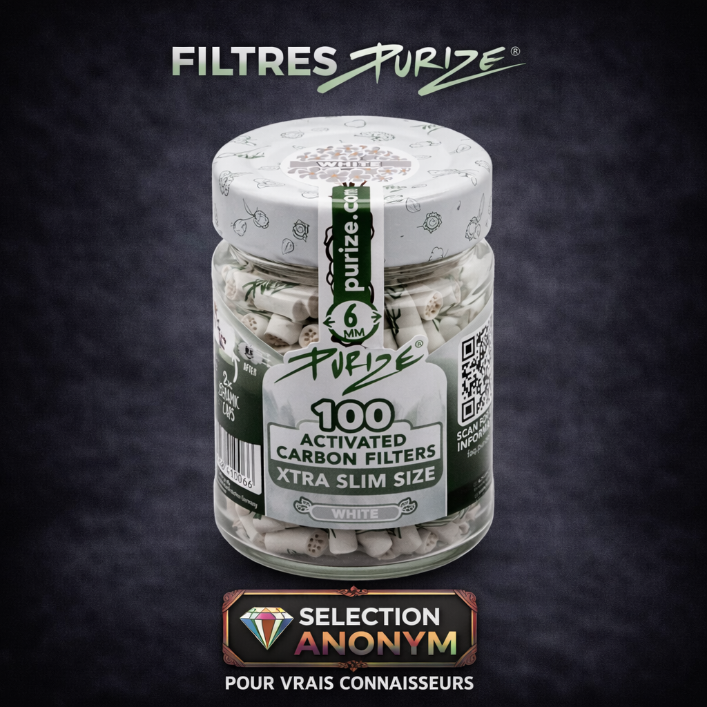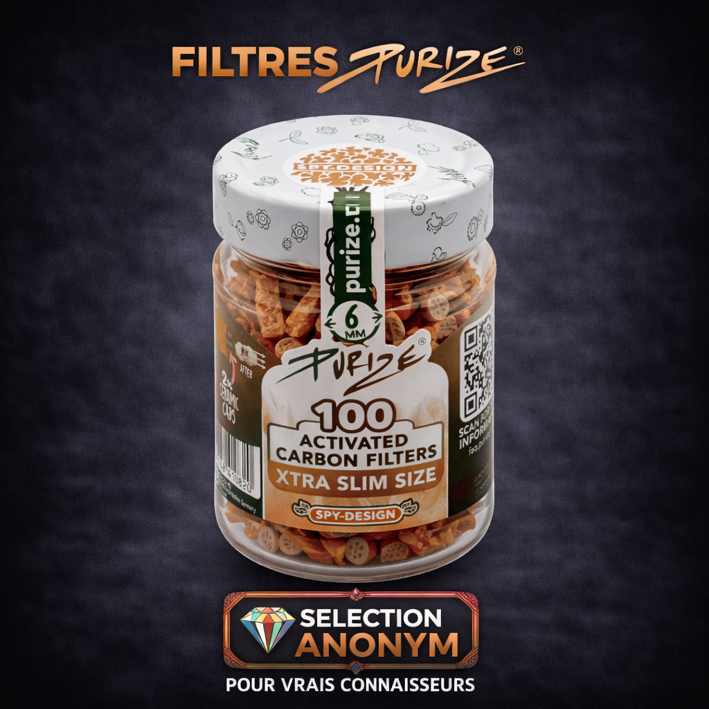 Chaque carnet est marqué de la signature ANONYM® Seeds et accompagné d’un filtre carton détachable. Les dimensions standards permettent une compatibilité universelle avec les filtres Purize® ou classiques. L’emballage sobre et noir mat, orné de la foudre verte emblématique, incarne notre univers : moderne, premium et discret.